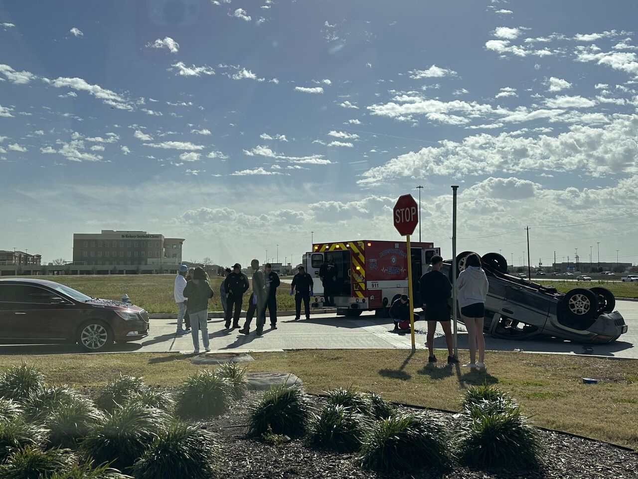 買い物を終えて戻ったら、私の車のすぐそばでこんな事が起きてました。