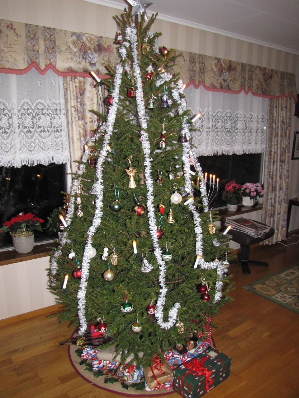 ツリーも生の木なので葉が落ち始めるまでそのままにしておく家庭が多いです。