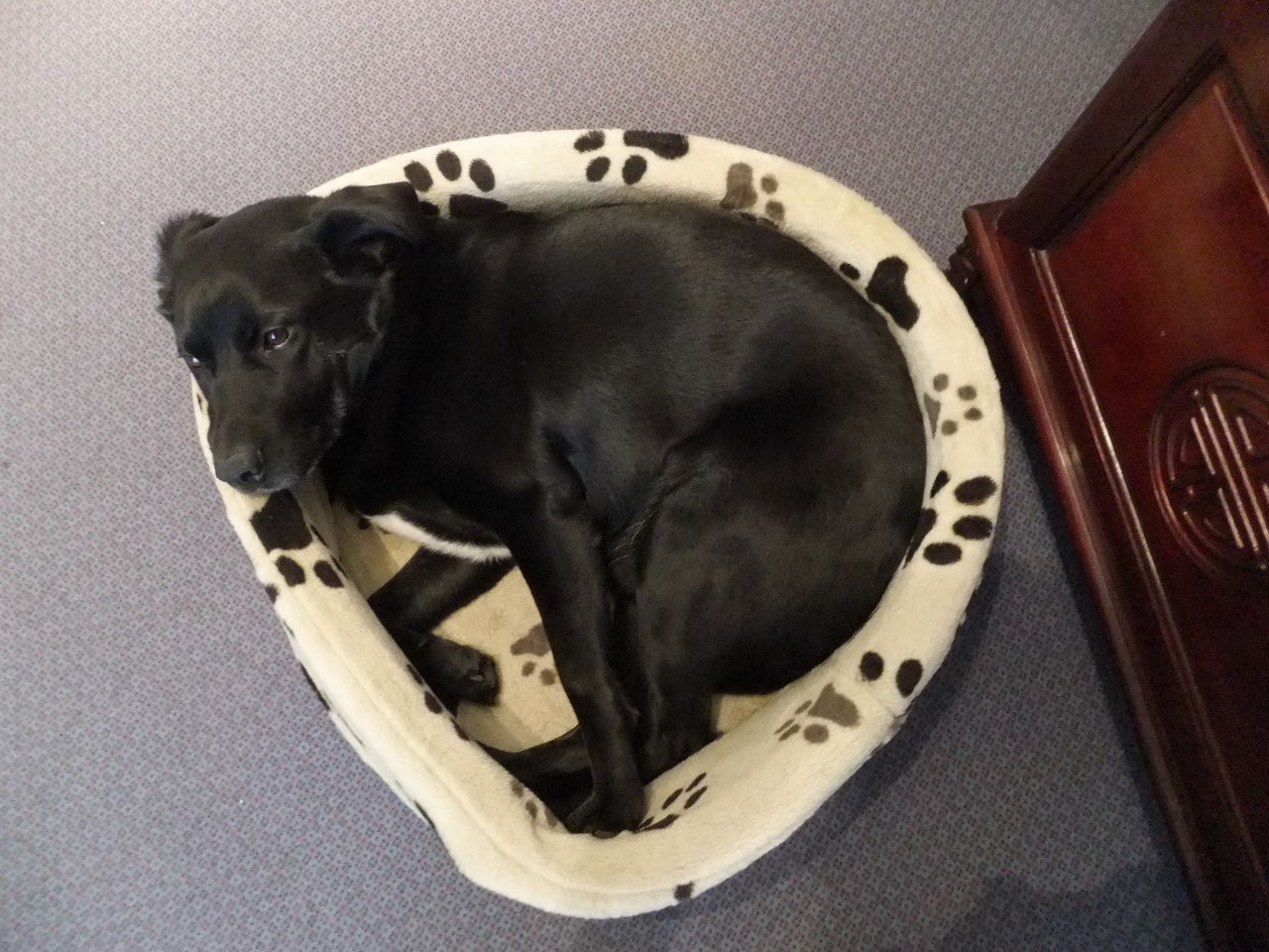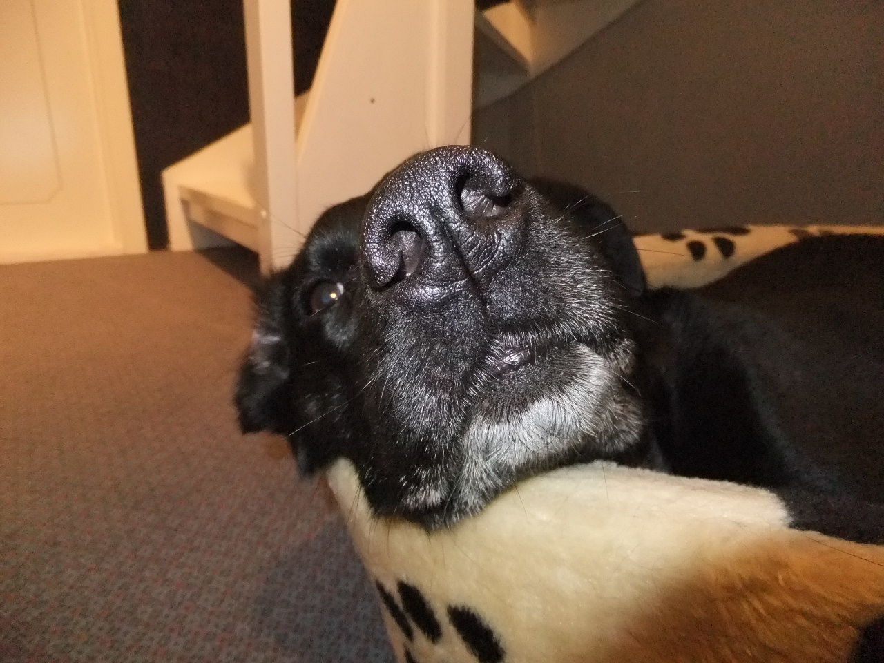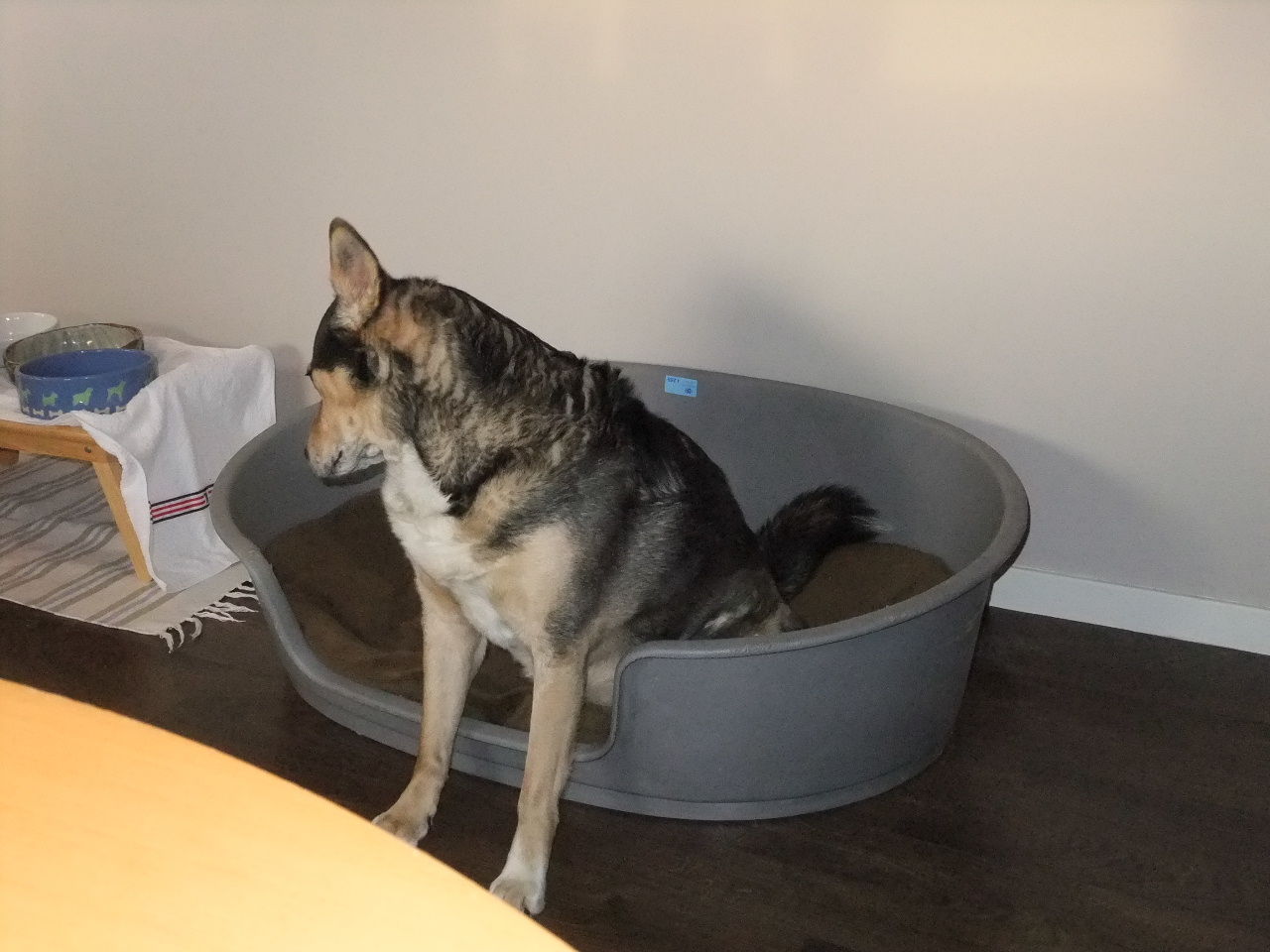 一昨日シャンプーして奇麗だった元ちゃんの頭が、フードかすまみれに・・・