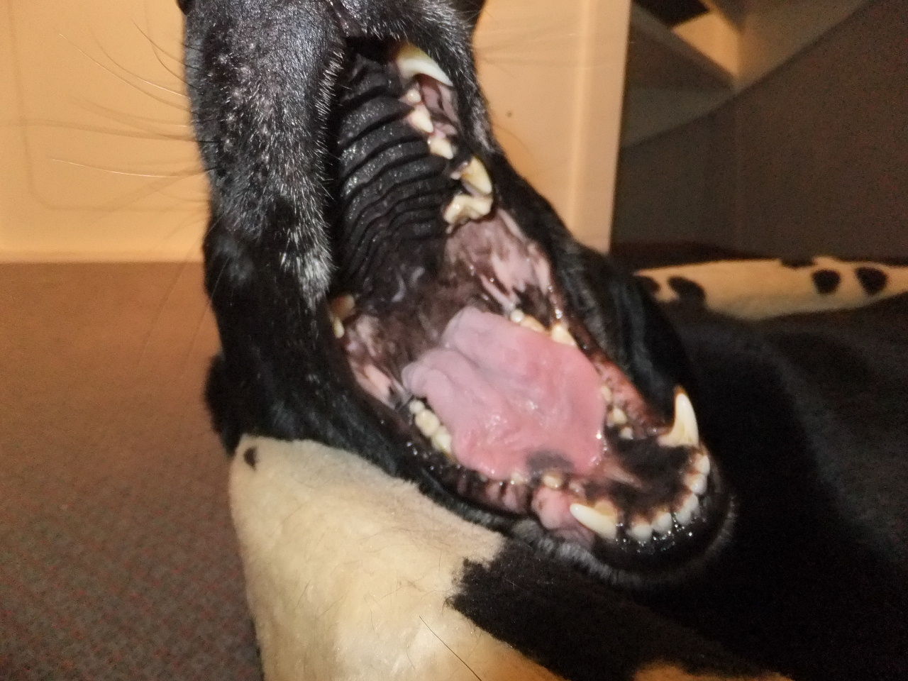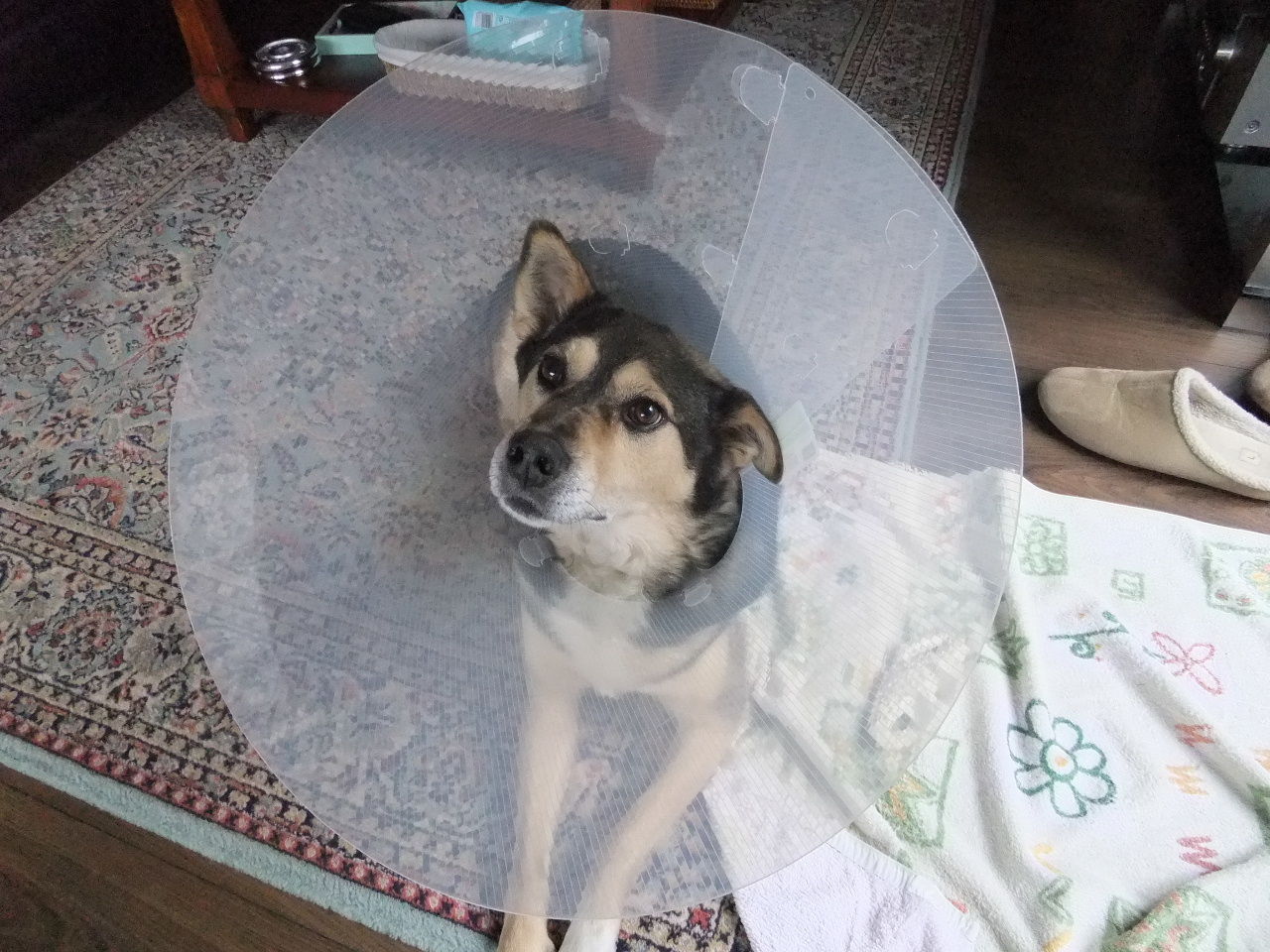 「よく頑張った、ご褒美ね!」と言って、ドライフードを山の様にくれたのだけれど、手から食べさせたから獣医さんの掌は元ちゃんのよだれとフードかすでデロデロになった。