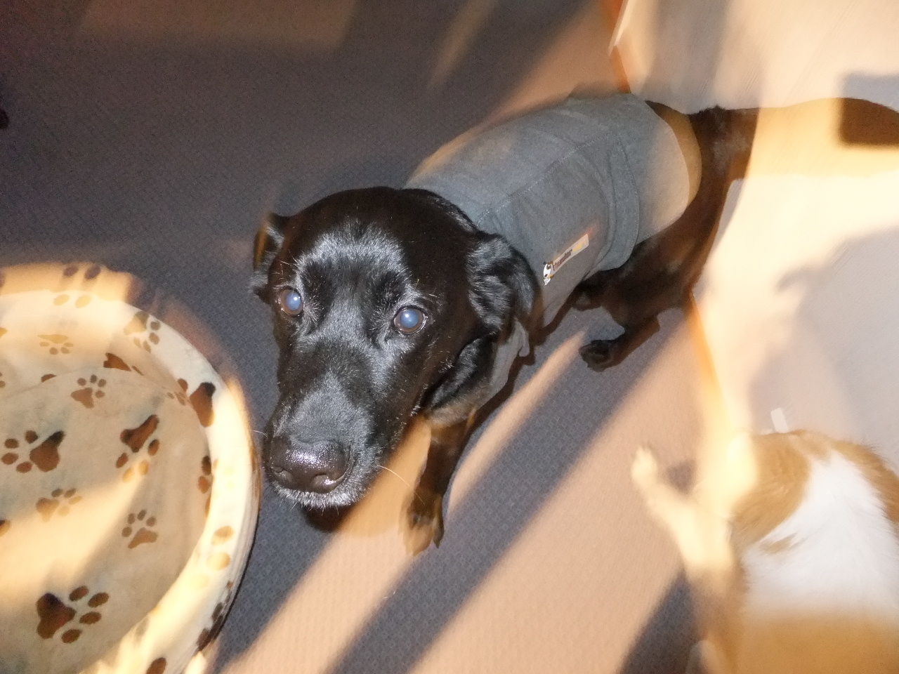 11月末、アメリカから戻ってきてから晴れの日など、両手で数えられるぐらいでお散歩の時、雷シャツが着せられません。