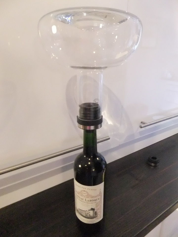 で、このガジェットのキモは、このワインをまたボトルに戻せるというところなのです。