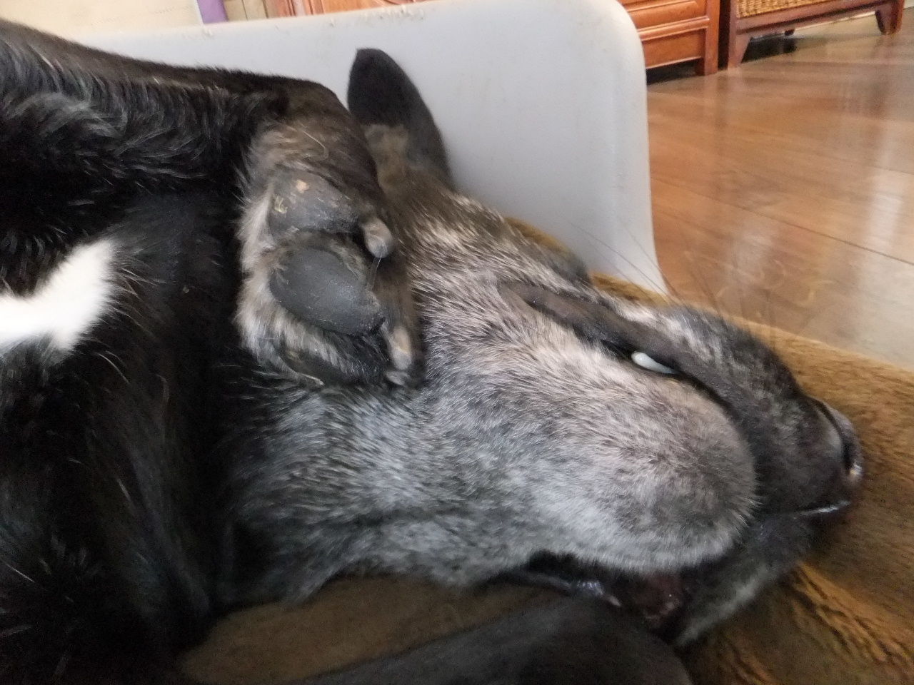 マリアさん、普段は夜中にリビングとお気に入りの椅子のある部屋を何往復かして寝ているのですが、ずっと同じ場所で、それこそ「死んだように」眠っていました。