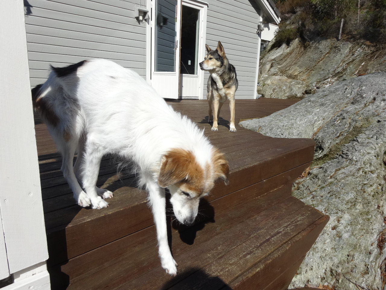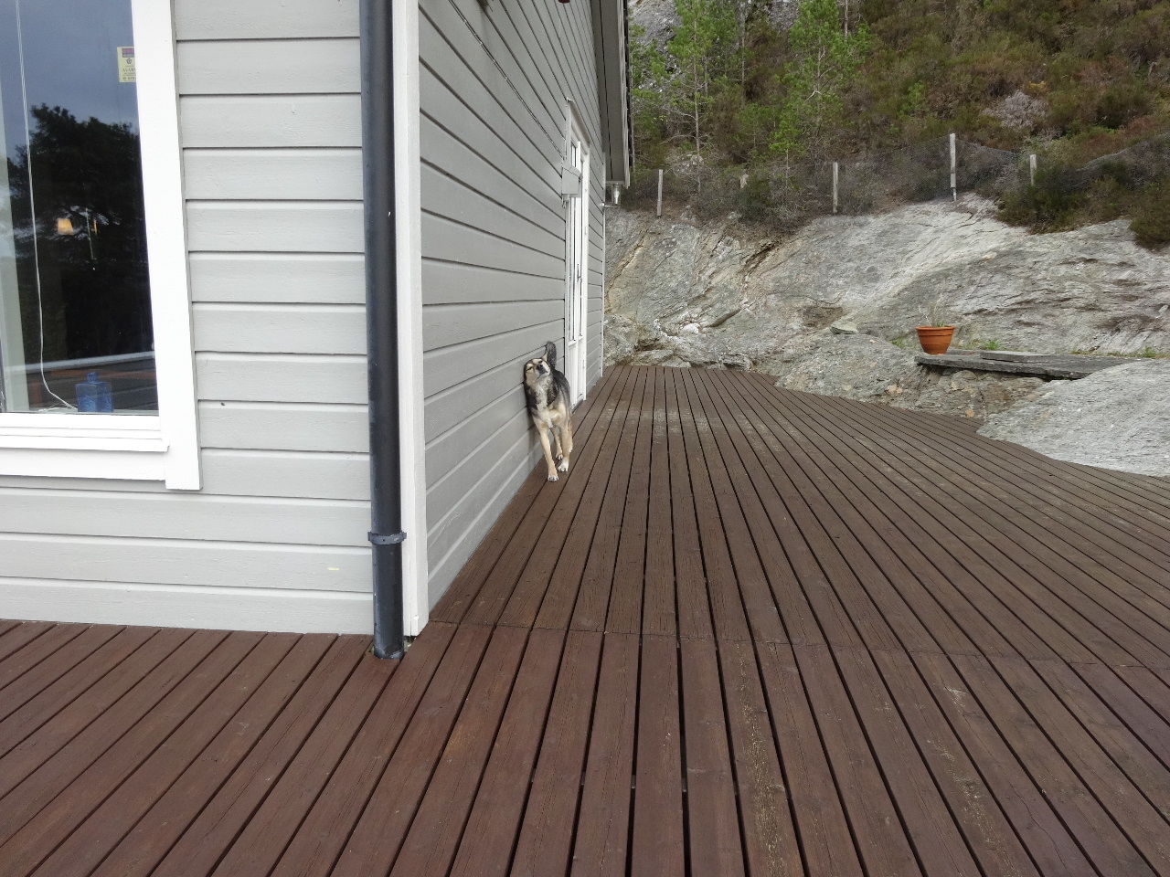 家の壁で豪快に身体スリスリ。