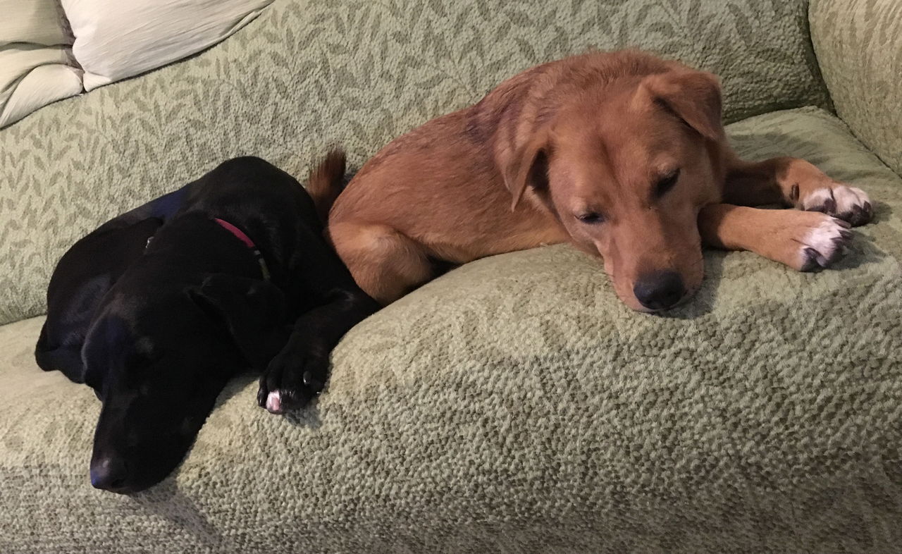 現在登場するのは、ちばわんのHPで犬の募集掲載を担当している私、ちばわんから引き取った「タス」、テネシー州の保護団体から引き取った「ストーム」そしてノルウェー人の夫。二人と二頭が、アメリカ・ヒューストン郊外で暮らす日常を綴っています。