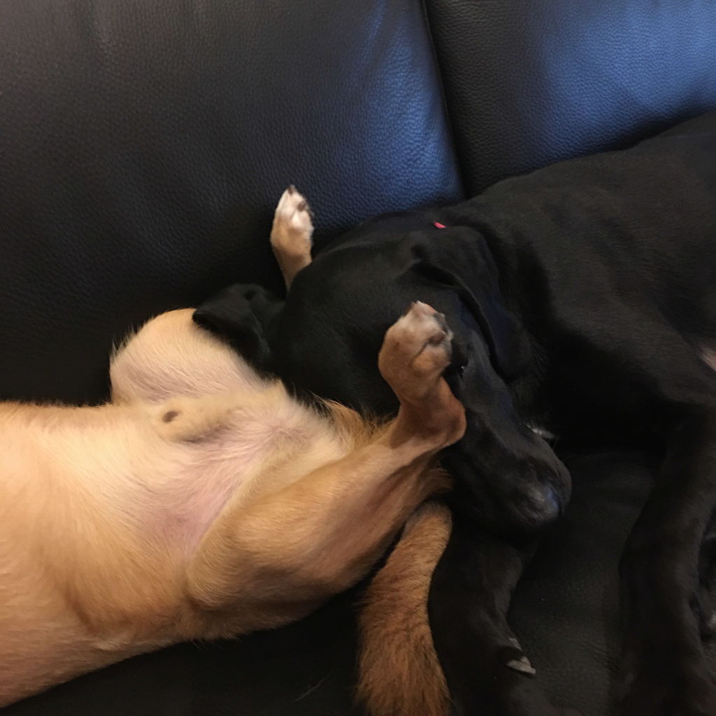 二頭は長時間のお留守番ができないので、父ちゃんが会社にいっている間は、トレーナーさん宅で預かってもらいます。