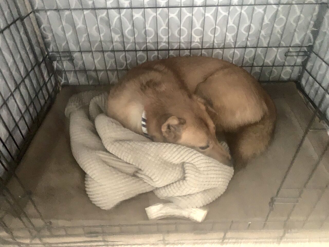 私の足元で丸くなるタス