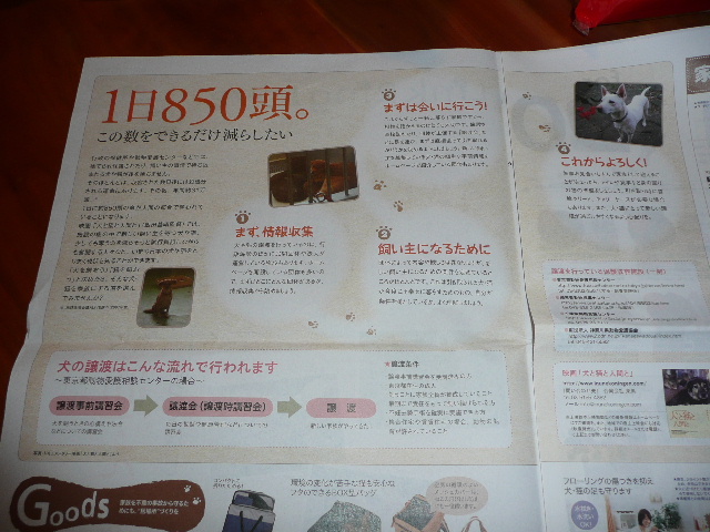 - 一日に850頭の命が消えようとしているのに対して、一日にこの位の数とまでいかなくってもこの位のパピーが悪いブリーダーによって生まれているのでしょうか!?もうこれ以上、増やさないで欲しいです。パピーは可愛いですが、成犬にも成犬の可愛さがあります。。。まずは救える命が先です。。。Yさんからの贈り物、嬉しいですね。海外に居ると日本の物がとっても恋しくなりますね。そしてYさんが送ってくれたこのメッセージのチラシ、沢山の人が見てくれるといいですね。