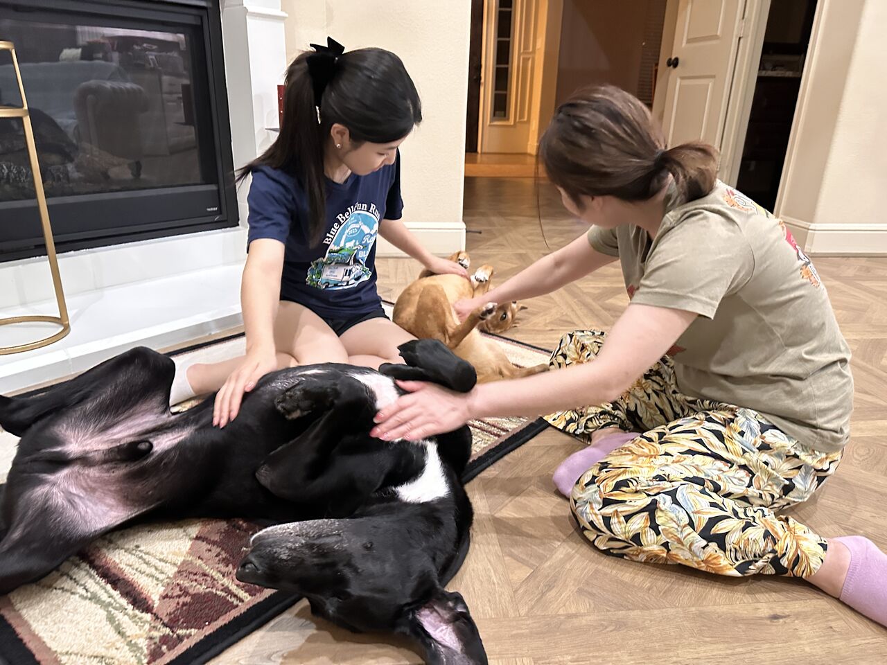 昨日は二頭のシャンプーに、友人親子がヘルプに来てくれました。