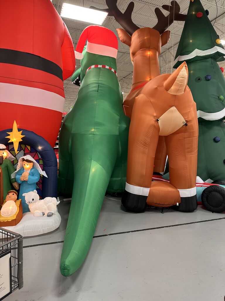 手前の緑のワニ?が私より大きいので、サンタ夫妻は5メートル以上あると思います。